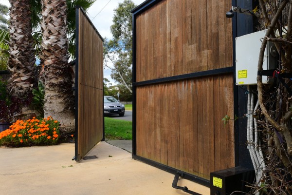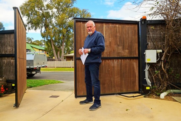 Low voltage can be run from a nearby 240 volt source eg. shed/house to power the gate controller. A low voltage cable powers the gate controller from this source. This system also utilises 2 x 12 volt batteries.